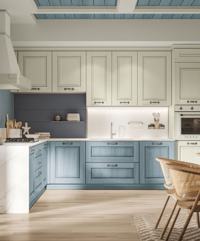 Nora is multifaceted, versatile, and eclectic: perfect for furnishing country houses and refined cottages, it’s equally at home in metropolitan settings, symbolising a thoroughly modern lifestyle, in keeping with current trends.The many faces of the solid wood kitchen.