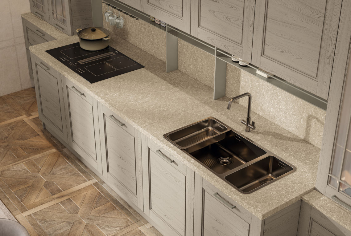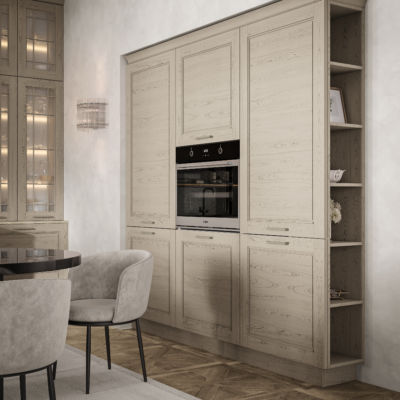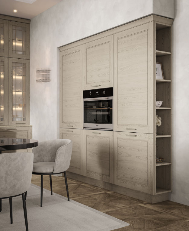 Alice est une cuisine en bois dotée de nombreuses variantes de couleurs et de modularité, pour un style à l’âme classique et aux lignes contemporaines, grâce à la grande polyvalence de ses éléments.