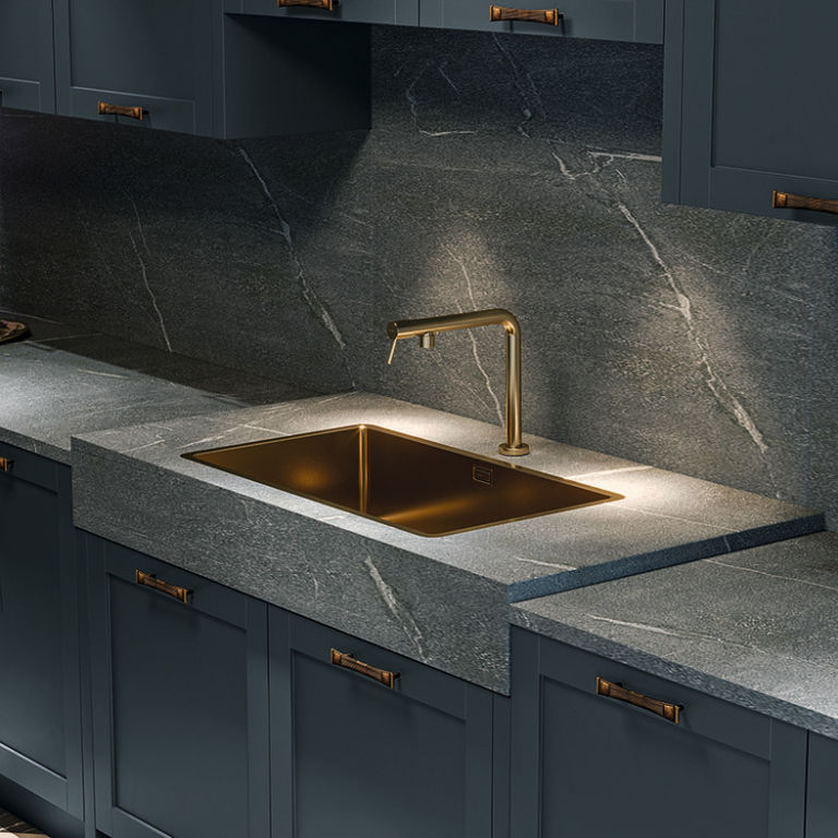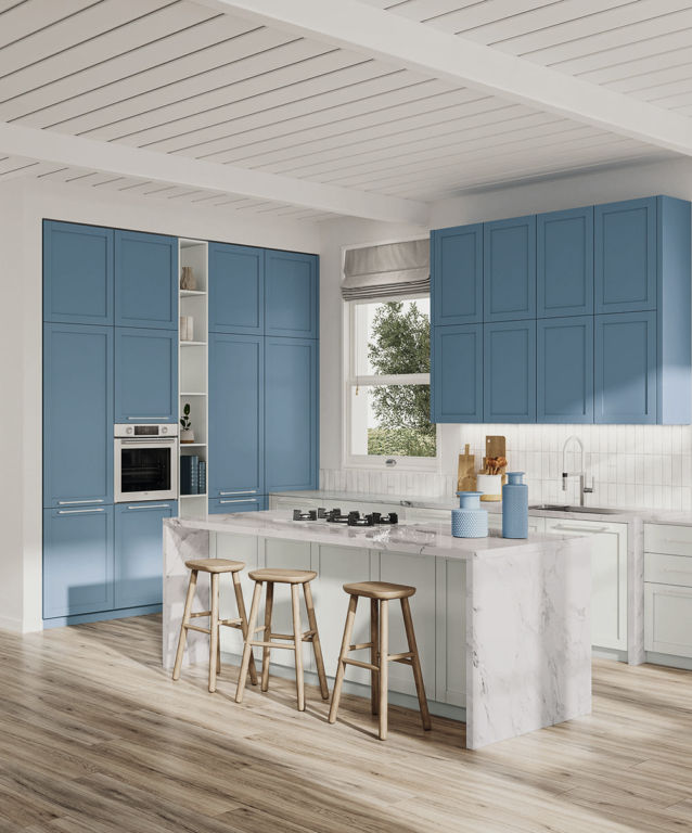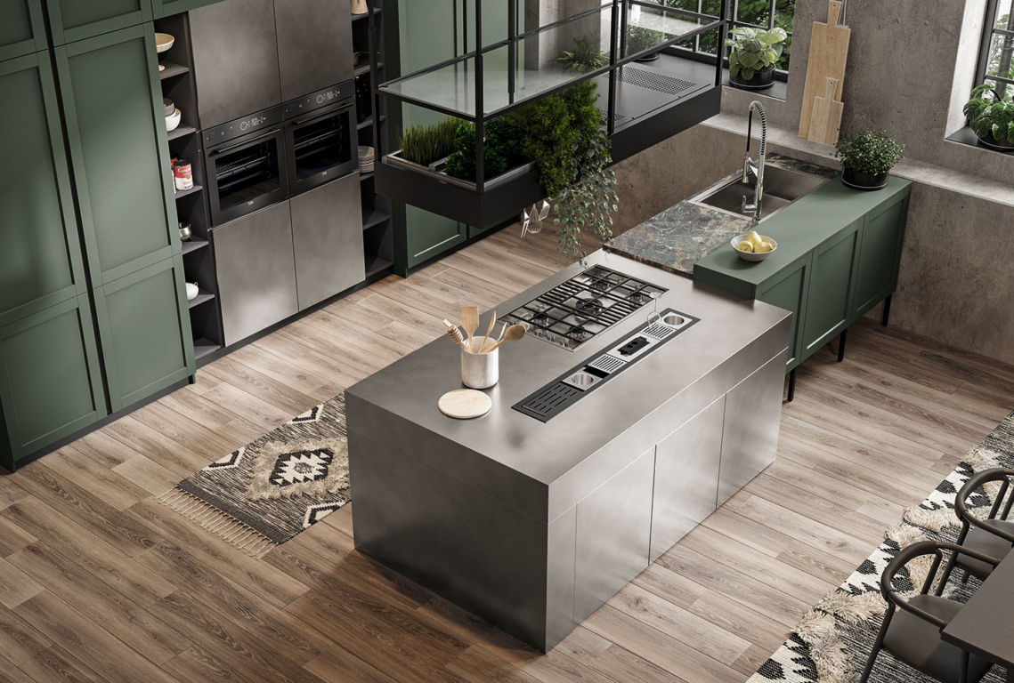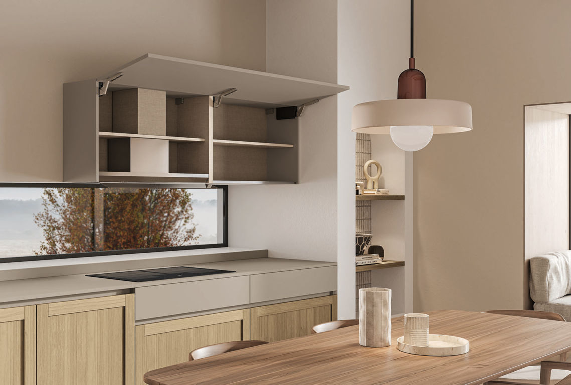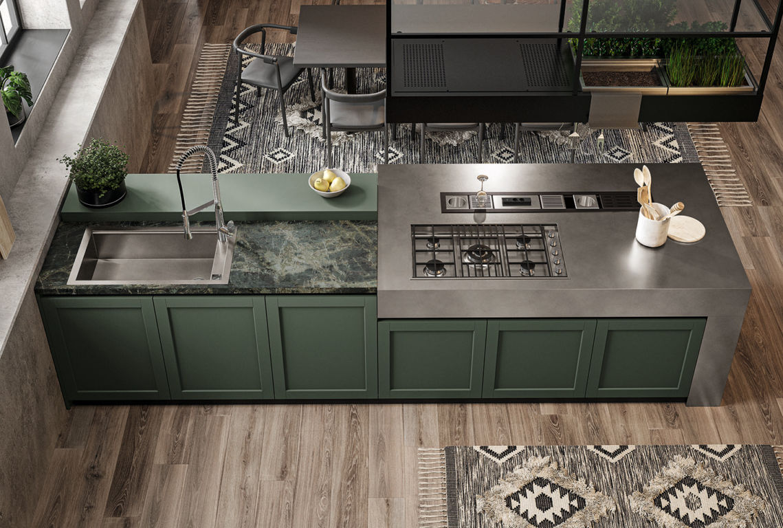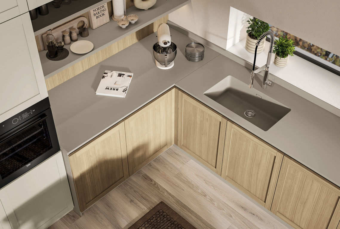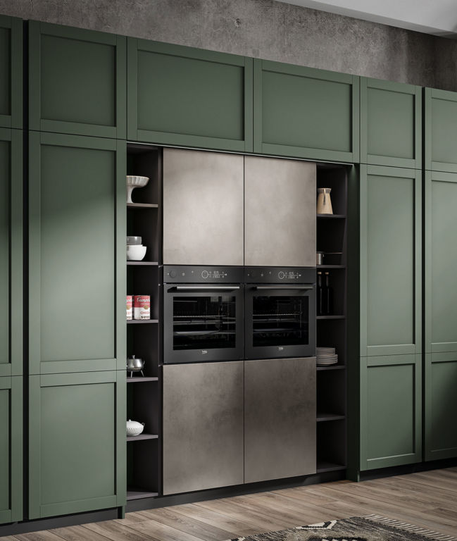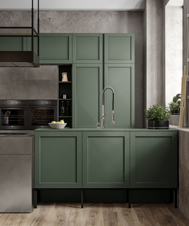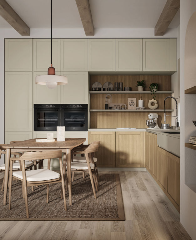 Queen reinterpreta l’anta a telaio con uno stile deciso e versatile. Disponibile in tinta unita o effetto legno, si inserisce con naturalezza in ambienti industrial, case sul mare, interni nordici o contesti luxury. Linee pulite e proporzioni equilibrate definiscono una cucina capace di esprimere carattere e raffinatezza in ogni spazio.