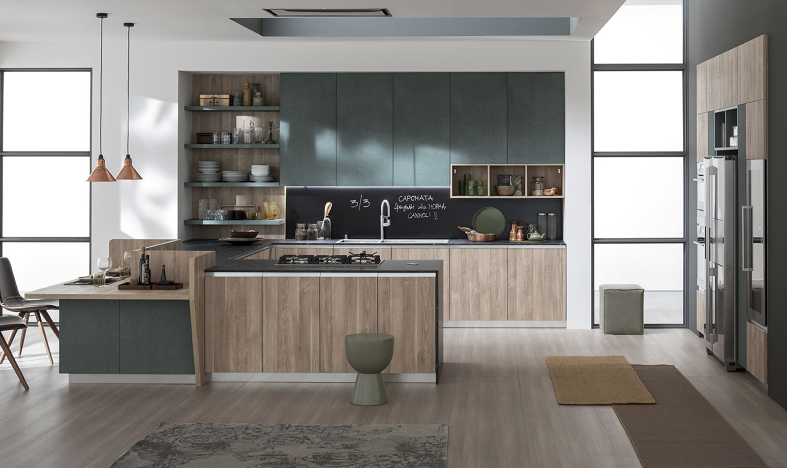 Abbinamenti perfetti, mix di tonalità e materiali, per un risultato frutto della massima personalizzazione in cucina.